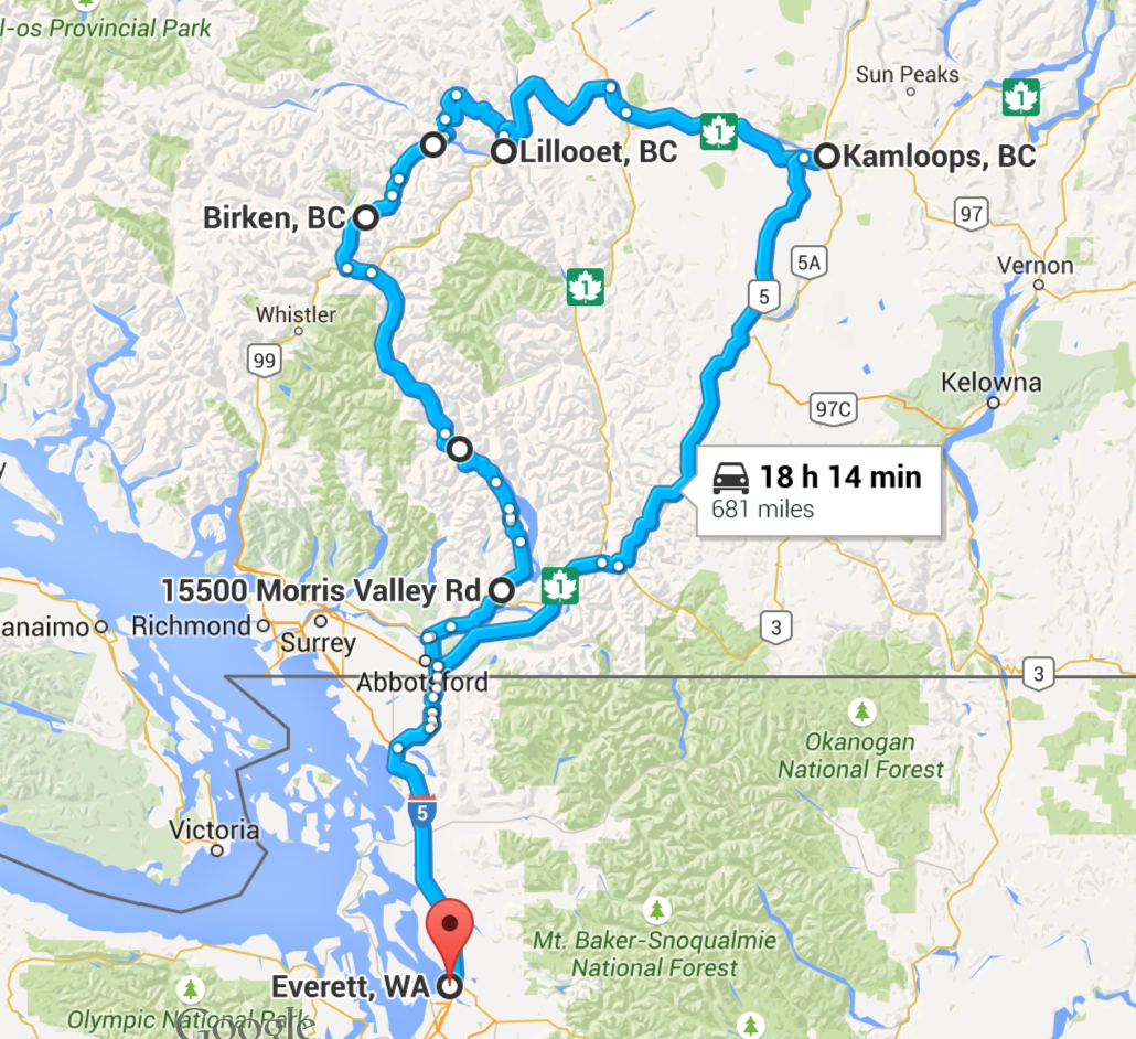 Day 1 Everett, WA to Williams Lake, BC